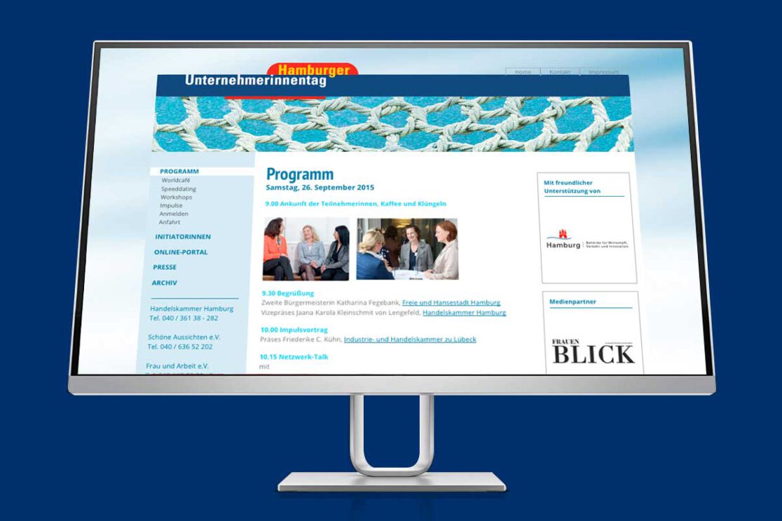 Designauftritt der 2‑jährlich stattfindenden Unternehmerinnentreffen in der Handelskammer Hamburg von 2001 bis 2017. Anpassung des Hauptmotivs an das jeweilige Veranstaltungsthema. Kundenberatung und Texte: Maria Jansen. Programmierung der Website: Inken Gritto, Hamburg.